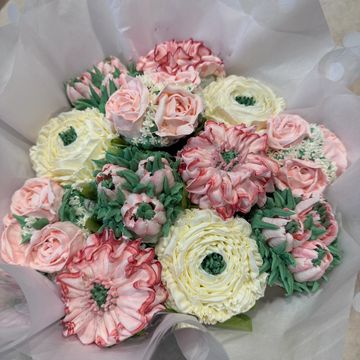 Lovely,edible floral cupcake bouquets make the perfect gift for all occasions. With so many different florals to choose from, you will not be disappointed when you eat these soft, moist cupcake bouquets with a beautiful buttercream flavor. Your loved ones and friends will rave about them for weeks to come. 12 cupcakes in each bouquet . Choose from vanilla, chocolate or lemon.