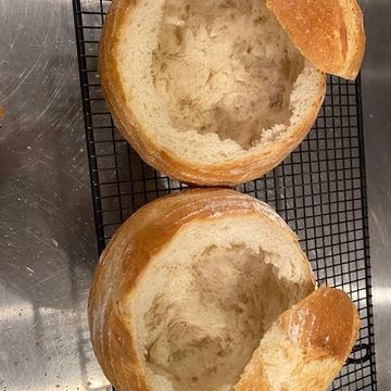 This is a package of 6 lightly crusted bread bowls baked from scratch. The soft inside makes them perfect for dipping soup. Each bowl holds a cup of hearty, warm soup! I l!